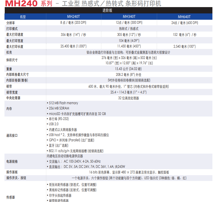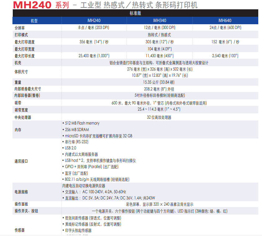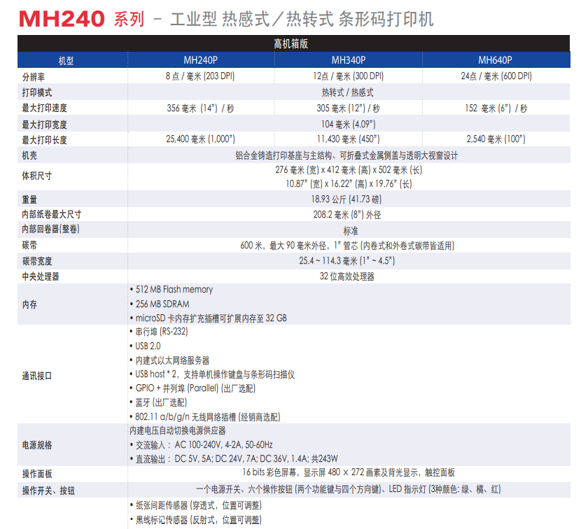 支援小標(biāo)簽剝離- 最小長(zhǎng)度達(dá)0.5吋(MH240/MH340/MH640 和MH240T/MH340T/MH640T)