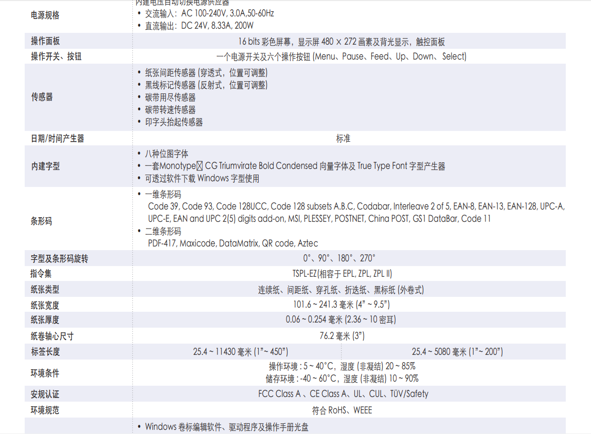 203 DPI 解析度之列印速度為6 IPS、300 DPI 解析度之列印速度為4 IPS